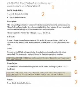 - The headline – which contains the actual recommendation, and the level (L1) that classifies the importance of the recommendation. A recommendation can be classified either as L1- mandatory recommendation, L2 – recommendations that can be implemented at a later stage of the hardening project, and NA- which will be the last one in its importance.